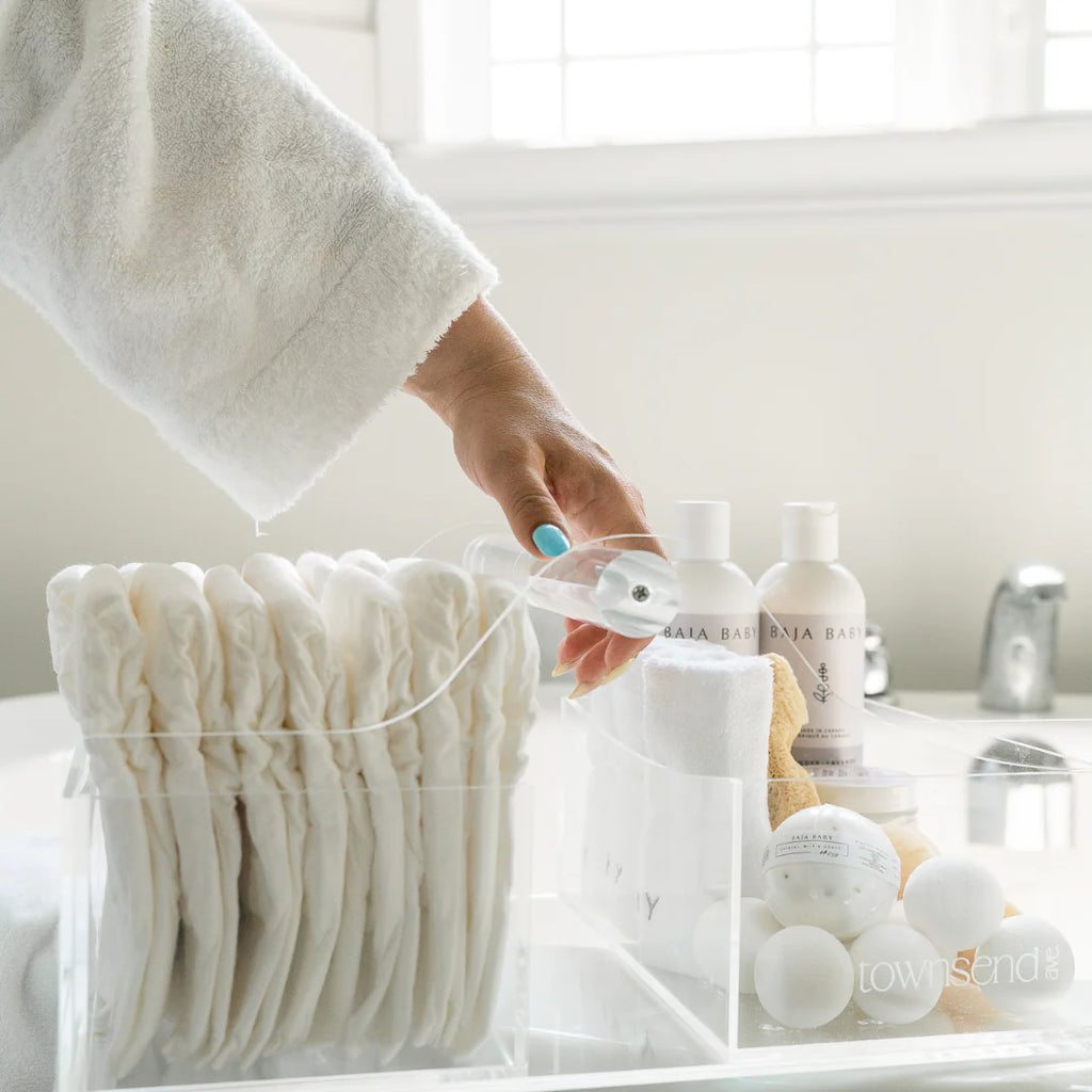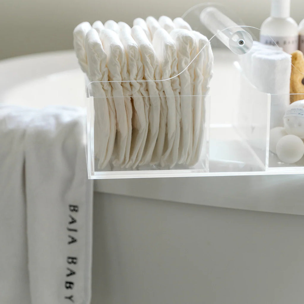 Stay organized in style with this chic and functional acrylic diaper caddy – the perfect blend of beauty and utility for today’s modern parent.