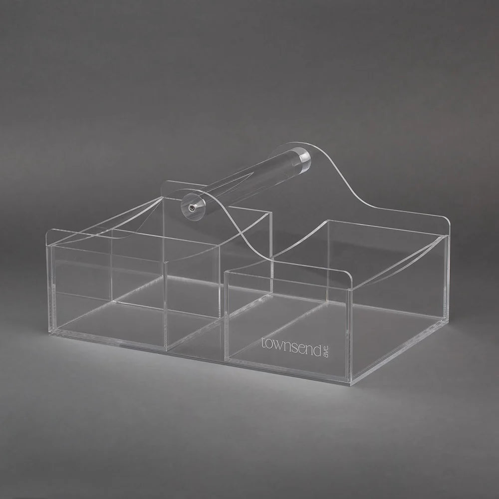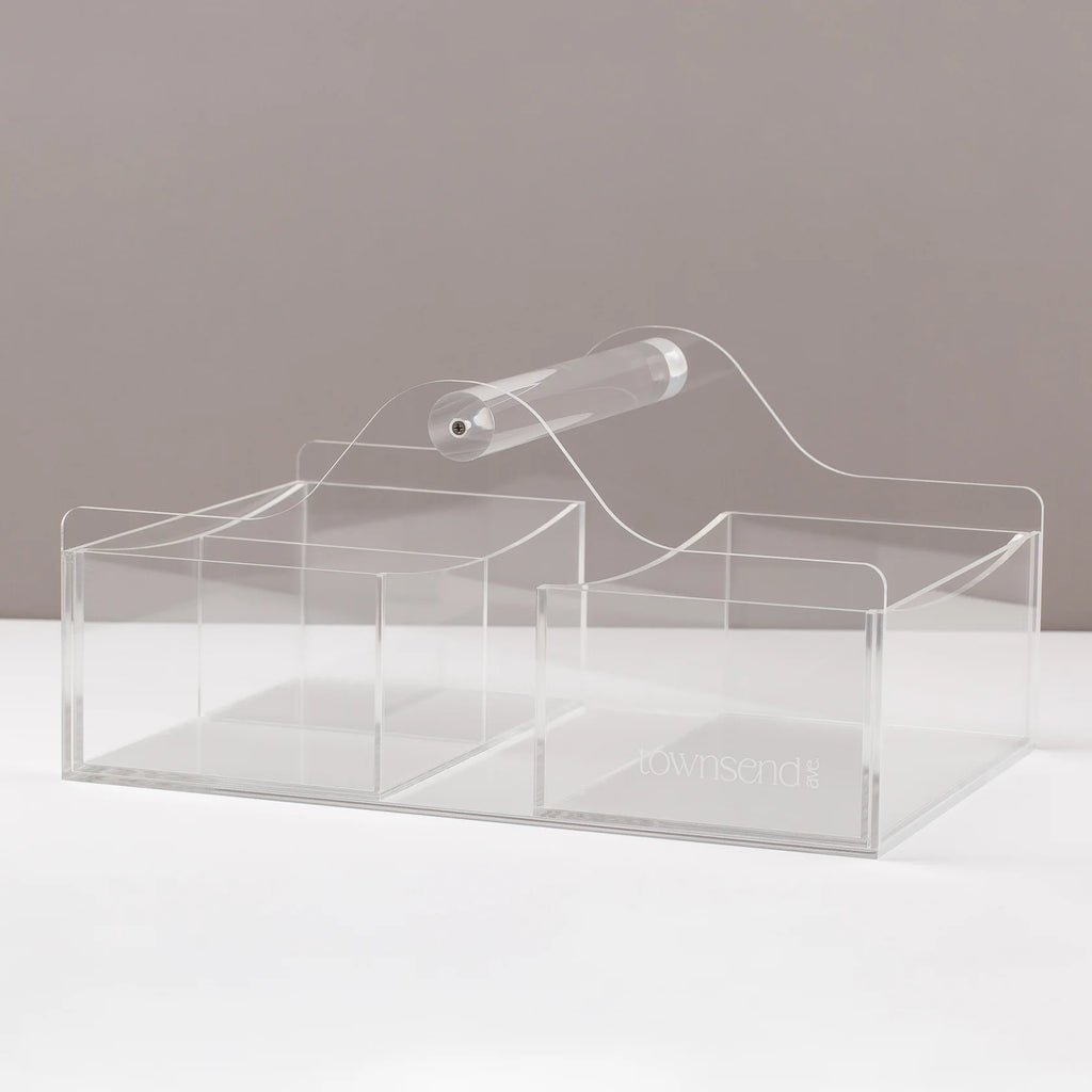 Keep your baby essentials organized and stylishly displayed with our Clear Acrylic Diaper Caddy. Designed with both function and aesthetic in mind, this modern nursery must-have features a durable, crystal-clear acrylic build and comes with two removable inserts, creating four customizable compartments to neatly separate diapers, wipes, lotions, creams, and more.