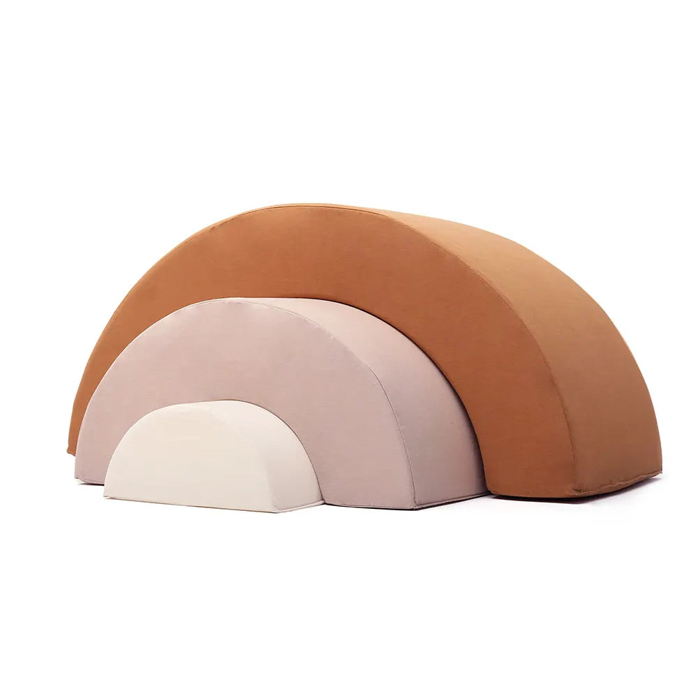 A decorative object as much as a plaything, the new MILO is composed of three half-moon cushions that fit together to form a playful and poetic rainbow. Suitable for children from 9 months, it can serve as a pouf, a playhouse, a tunnel, or even a construction toy. Made in France, each cushion is made of high-density soy-based foam, covered in organic cotton.