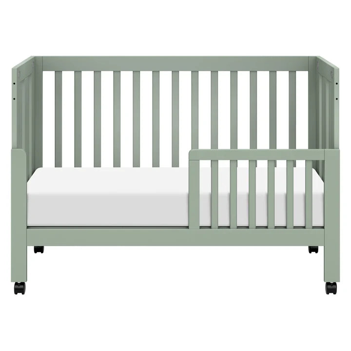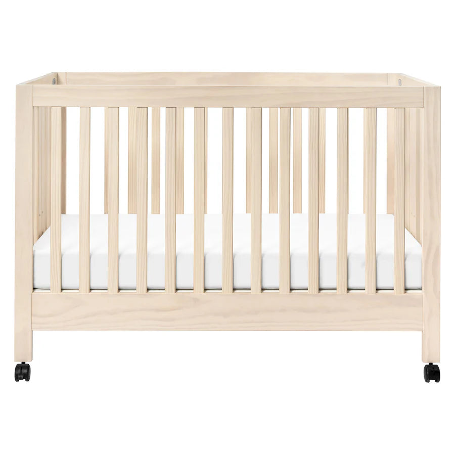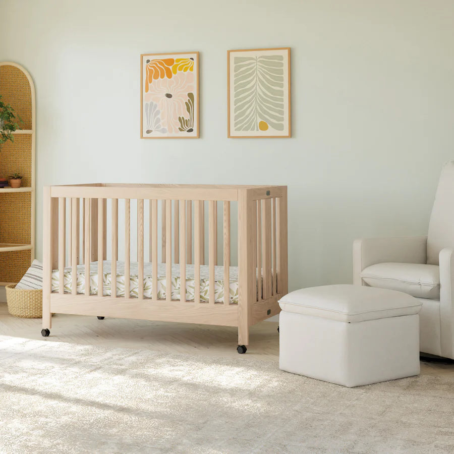 The Maki full-size crib is the modern lifestyle essential! Its clean, modern geometric lines and foldable frame make this crib portable and easy to store. Designed for movement with removable wheels and lightweight timber construction, making it perfect for secondary living spaces or a sleepover at Grandma’s. Modern and functional, an included toddler bed conversion kit allows you to seamlessly convert from crib to toddler bed as your babe grows.
