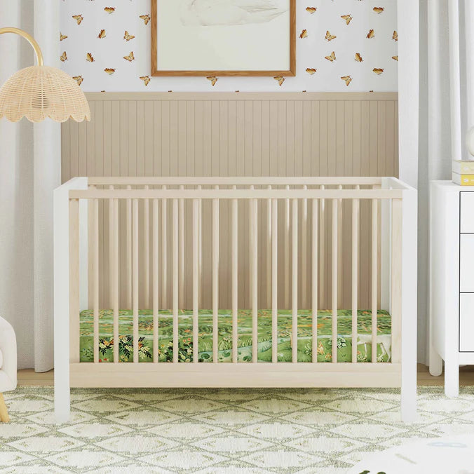 The Marisol 4-in-1 Convertible Crib brings modern style and versatility to your nursery. Designed to grow with your little one, it transitions seamlessly from crib to toddler bed, daybed, and full-size bed for years of use. With its sleek two-toned finish and unique popsicle-shaped feet, this crib creates a stylish and functional centerpiece for your baby’s room.
