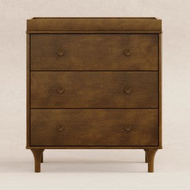 Enjoy the playful modernity of the Lolly 3-Drawer Dresser by Babyletto! With natural curves, delicate natural feet, and an included removable changing tray, the Lolly Dresser is a perfect complement to the Lolly 3-in-1 Convertible Crib.