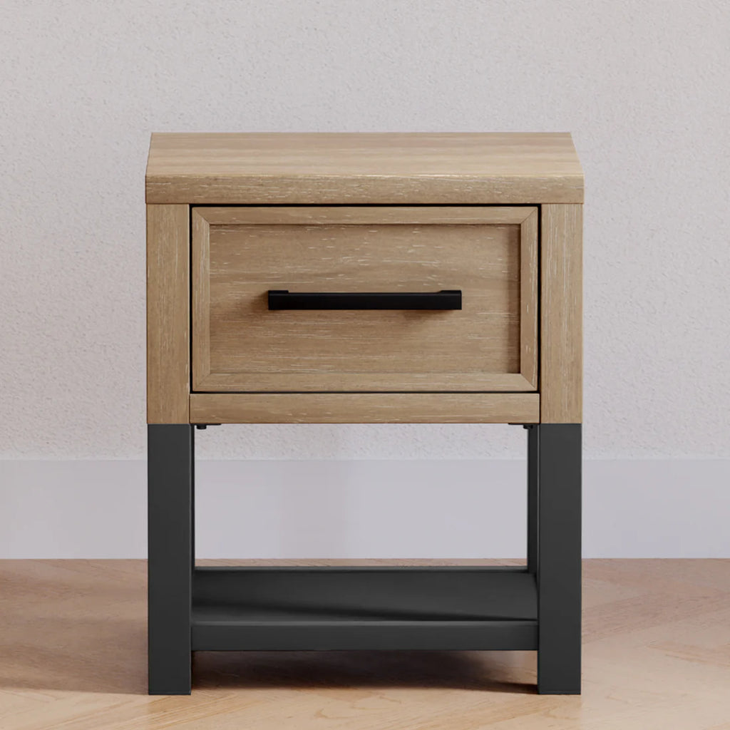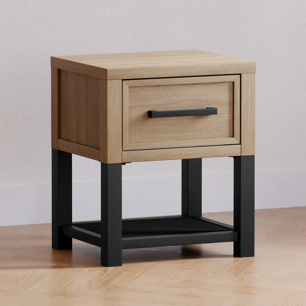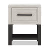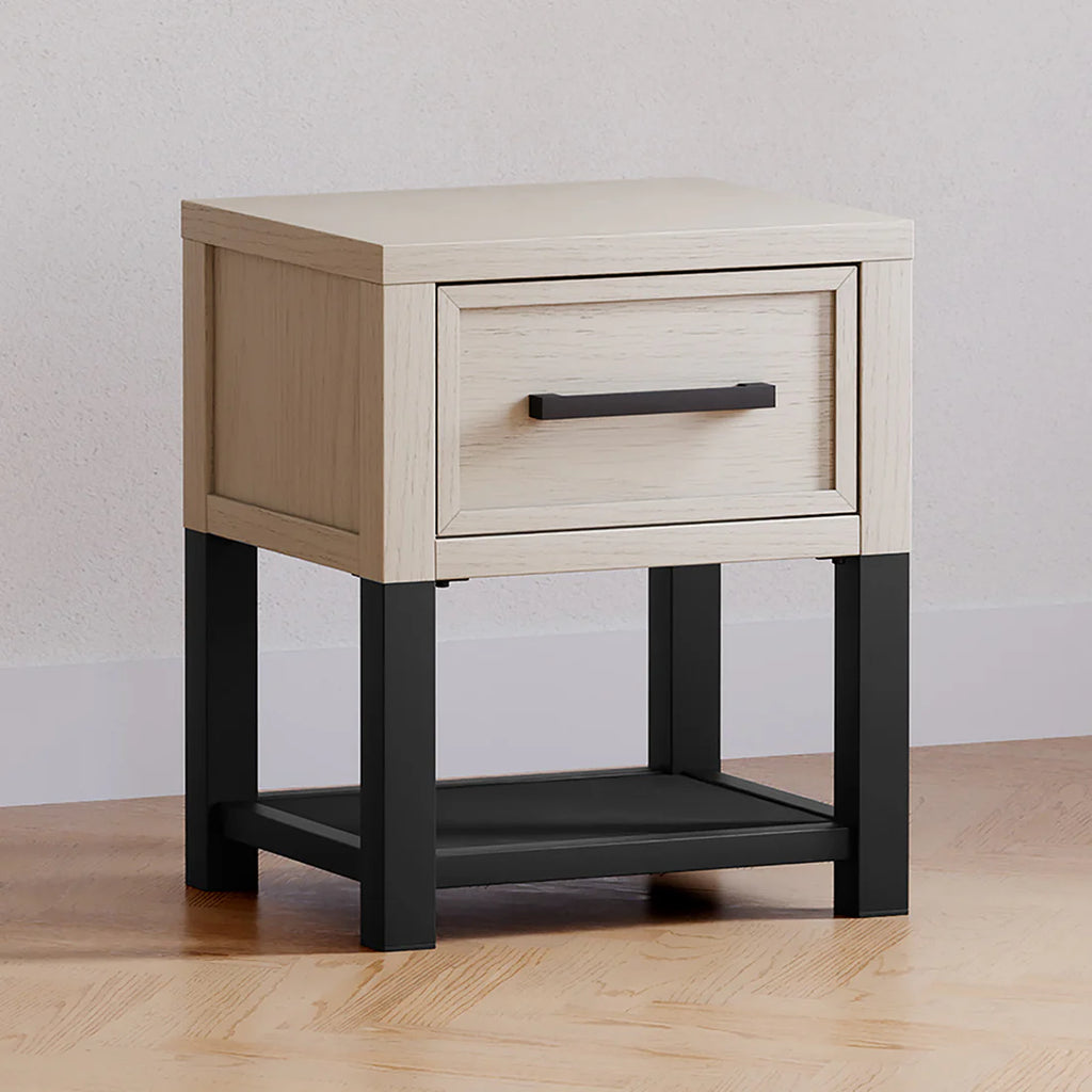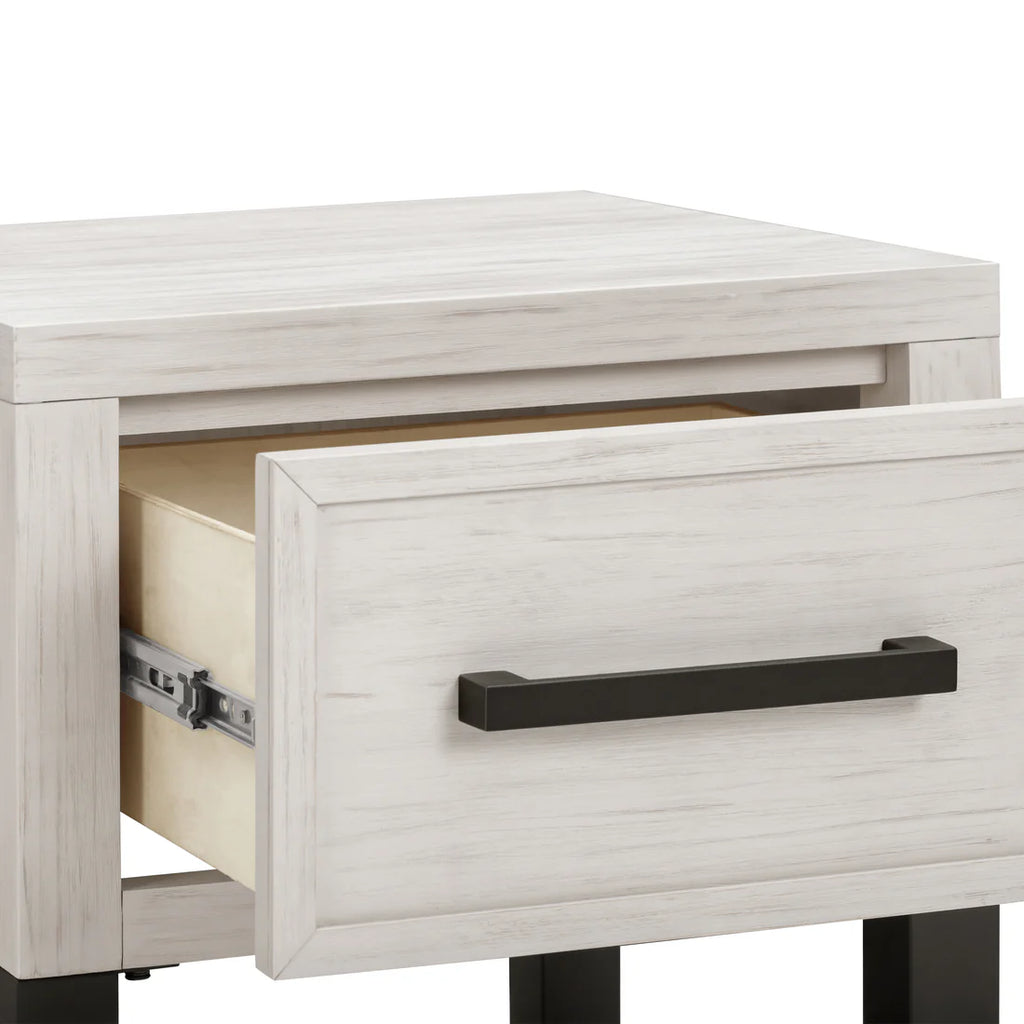 The Newbern Nightstand pairs clean lines with a metal base for a fresh take on farmhouse style. A smooth-glide drawer and open lower space offer practical storage, while the textured finish adds a refined touch.