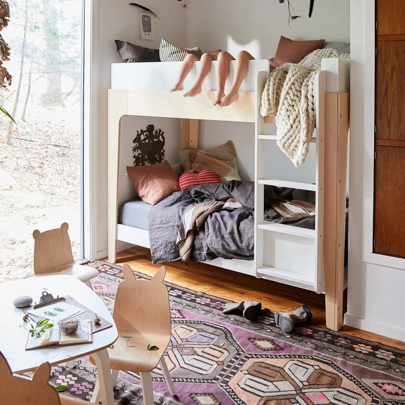 The elegant Perch twin bunk bed is the perfect centerpiece for any child's room. Its compact footprint leaves plenty of room for play and additional furnishings. The versatile Perch easily separates into a loft bed and a standalone twin, giving many configuration options. Fits standard American Twin Mattress".