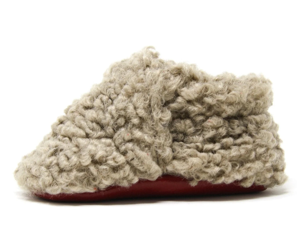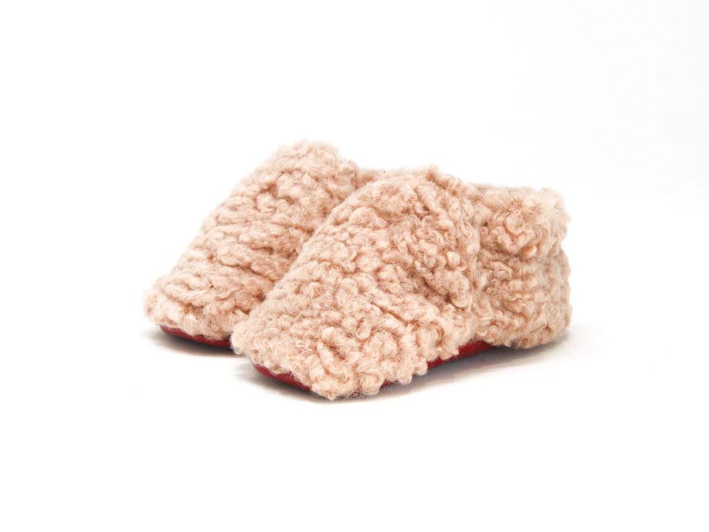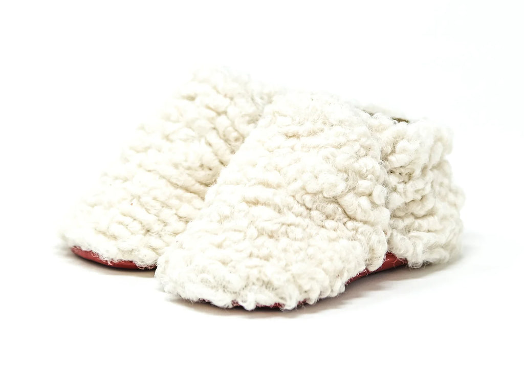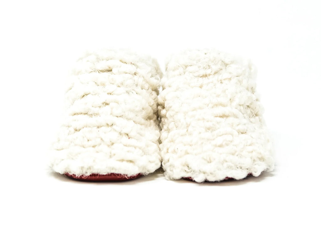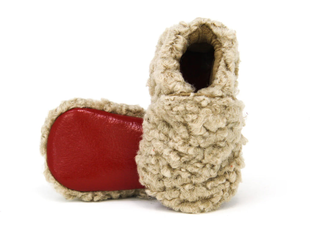 These cosy baby booties are hand-made using high-quality, locally sourced shearling fabric.