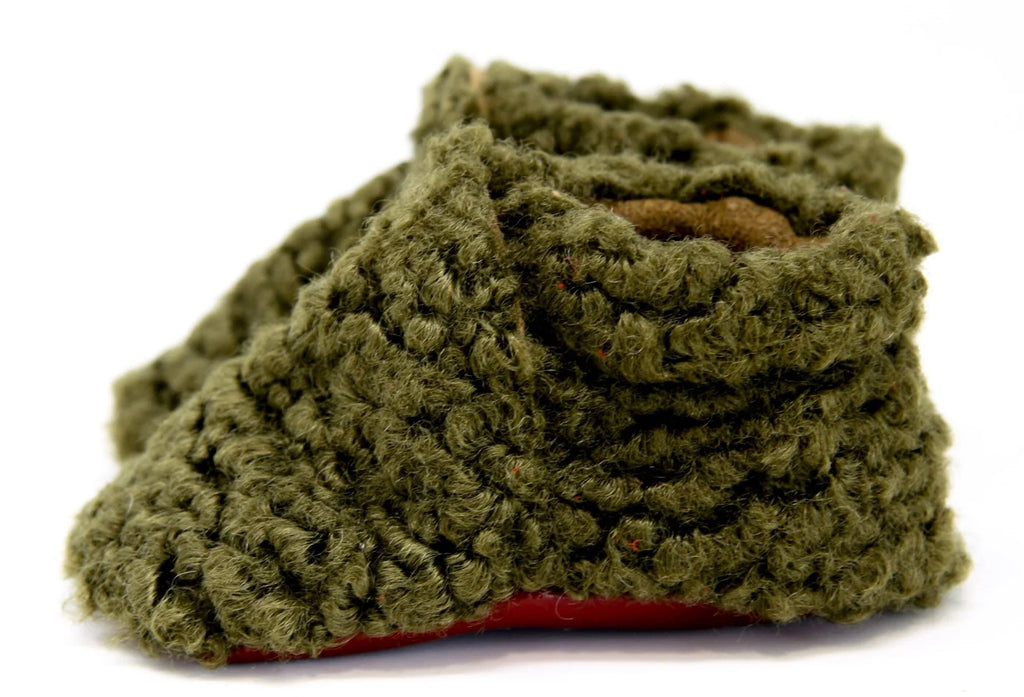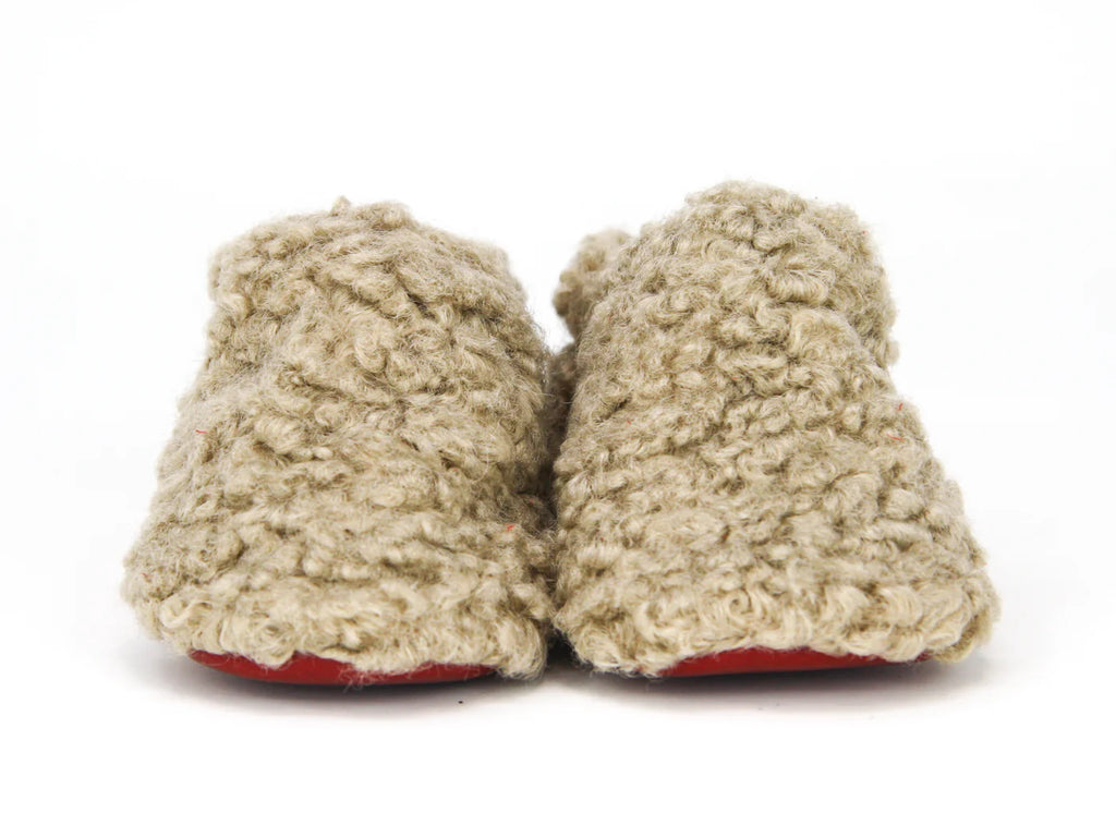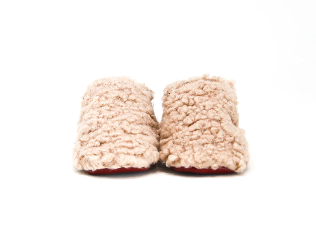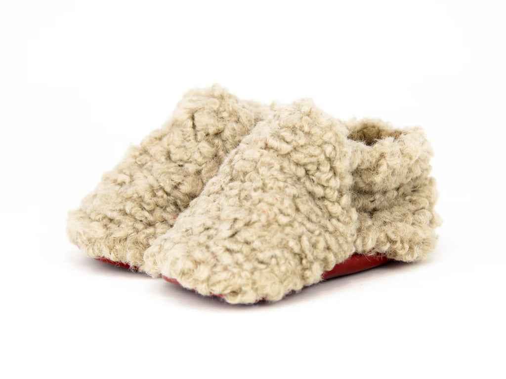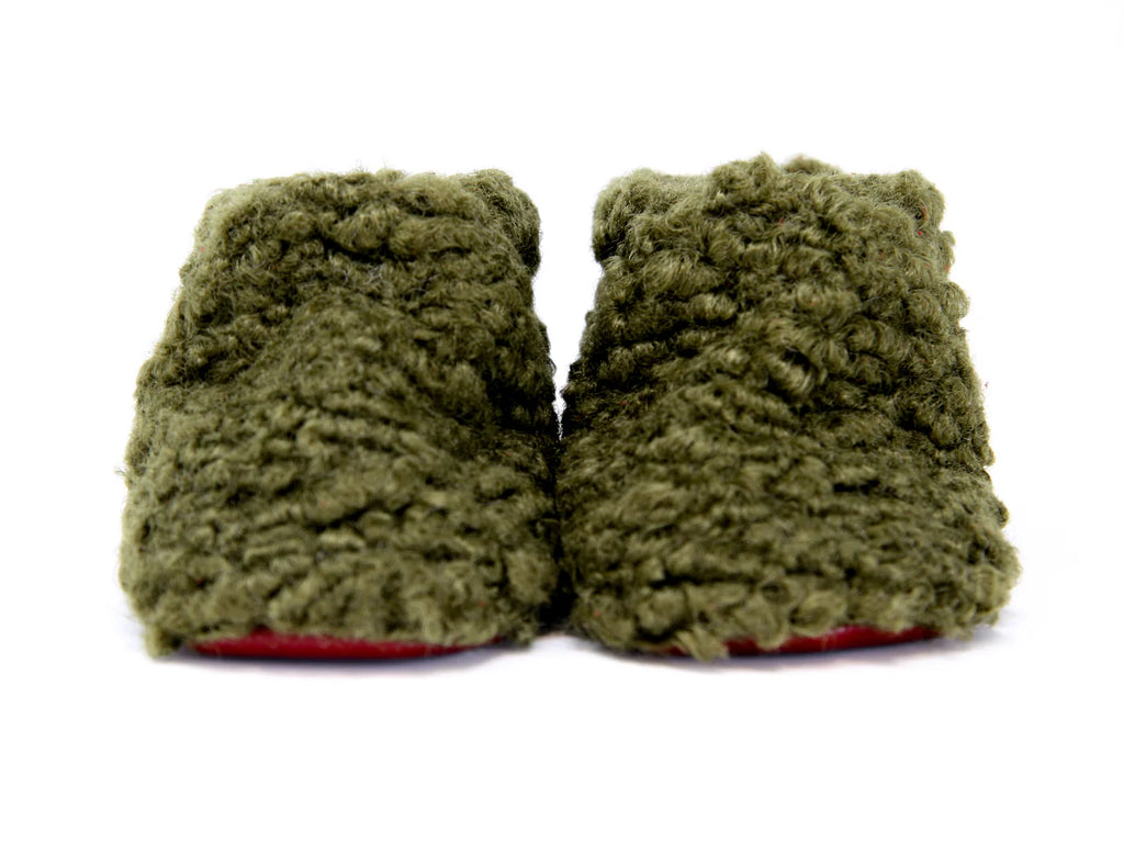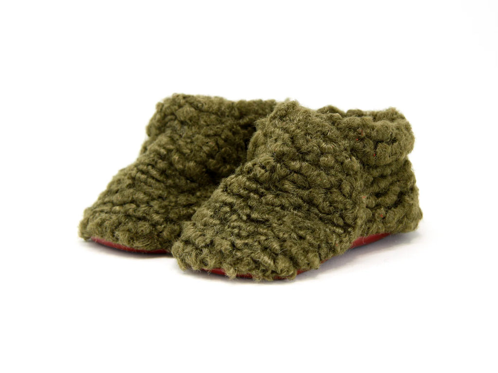 These cosy baby booties are hand-made using high-quality, locally sourced shearling fabric.