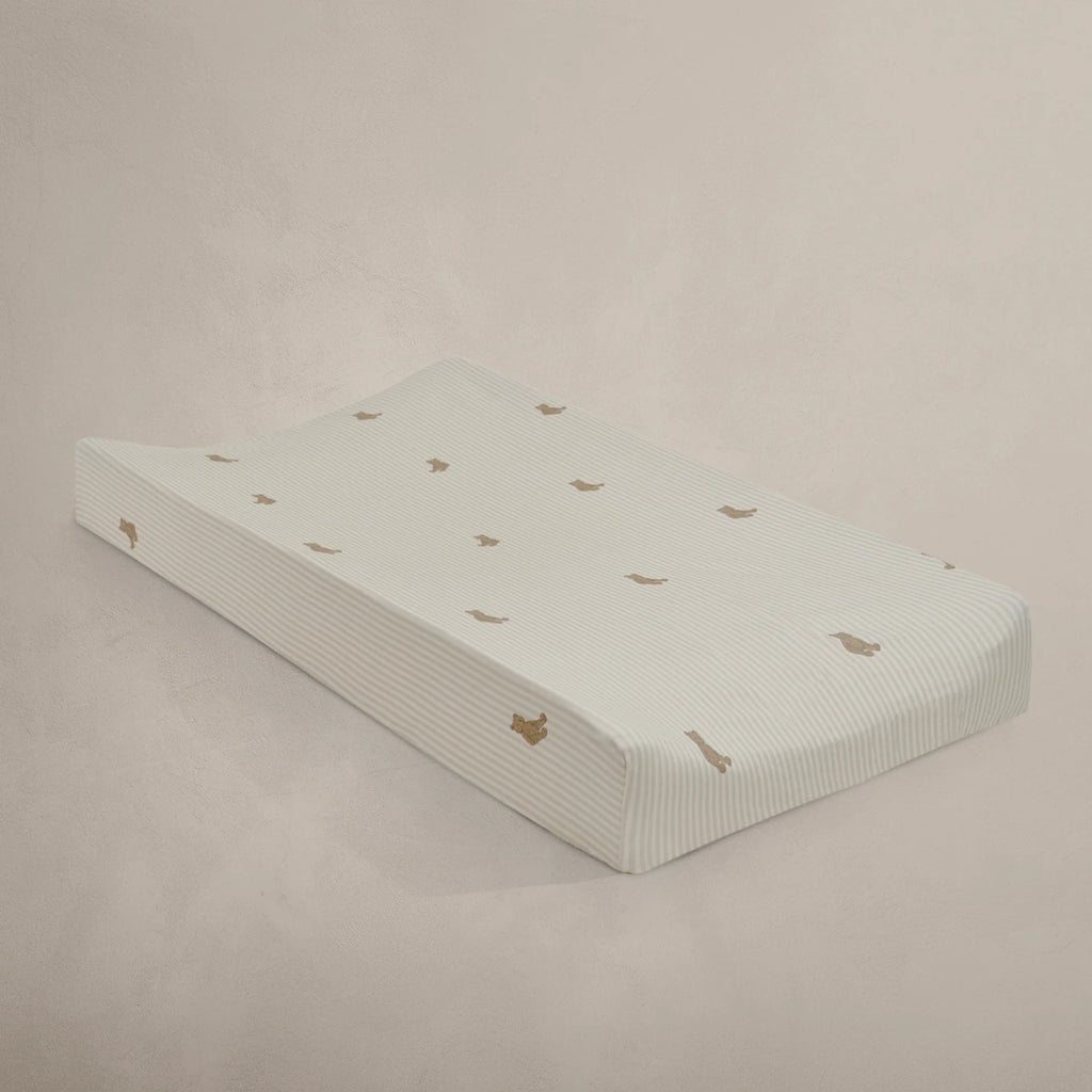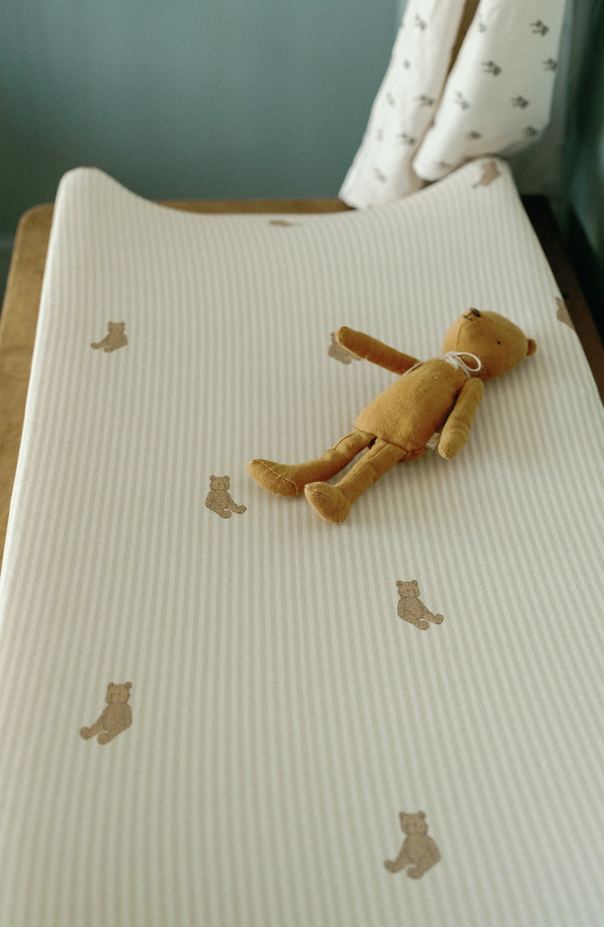 Keep your diaper changing station sanitary and chic with this 'Bear' changing pad cover. All changing pad covers are made with a soft stretch jersey fabric that is fully machine washable and designed to the highest standards of quality—everything you've come to expect from Oilo™.