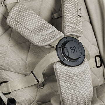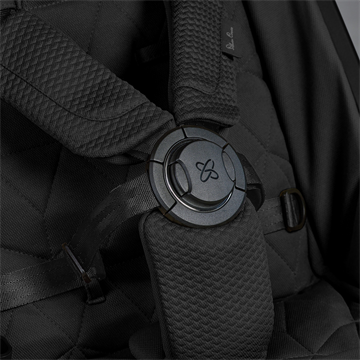 • Comfort for all. Easy-to-use magnetic Genius™ buckle, cushioned harness pads and soft vegan leather handlebar.