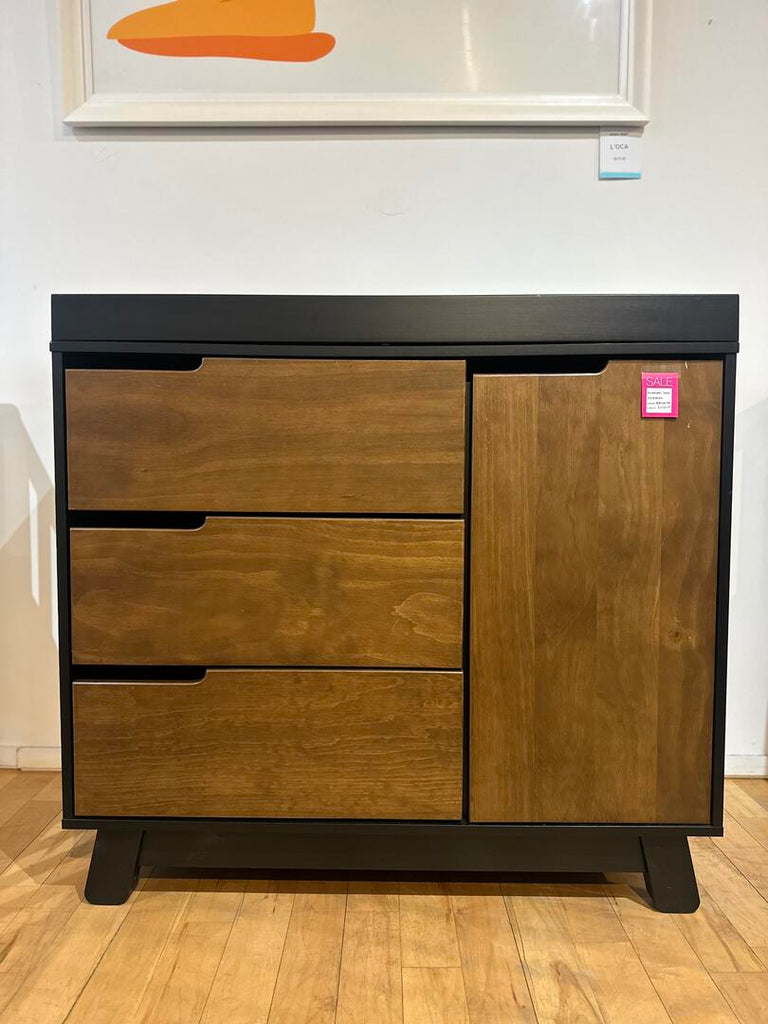 Get more from your nursery furniture with the versatile Hudson Changer Dresser. Combining a changing table, three drawer dresser and storage cabinet all in one solid, practical package, the Hudson Changer Dresser by Babyletto is a modern space-saving convenience. Complementing the mid-century modern-inspired Hudson 3-in-1 Convertible Crib, the dresser comes in three chic finishes including two new takes on two-tone for the nursery.