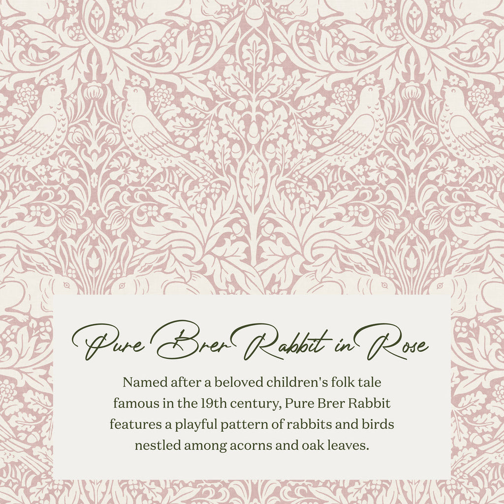 • ABOUT THE DESIGN: Named after a beloved children's folk tale famous in the 19th century, Pure Brer Rabbit features a playful pattern of rabbits and birds nestled among acorns and oak leaves.