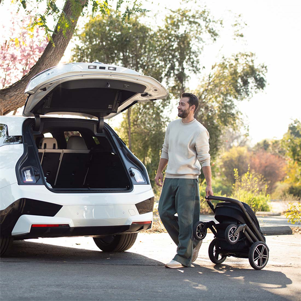 • • One-piece fuss-free compact fold, no matter which way the seat is facing